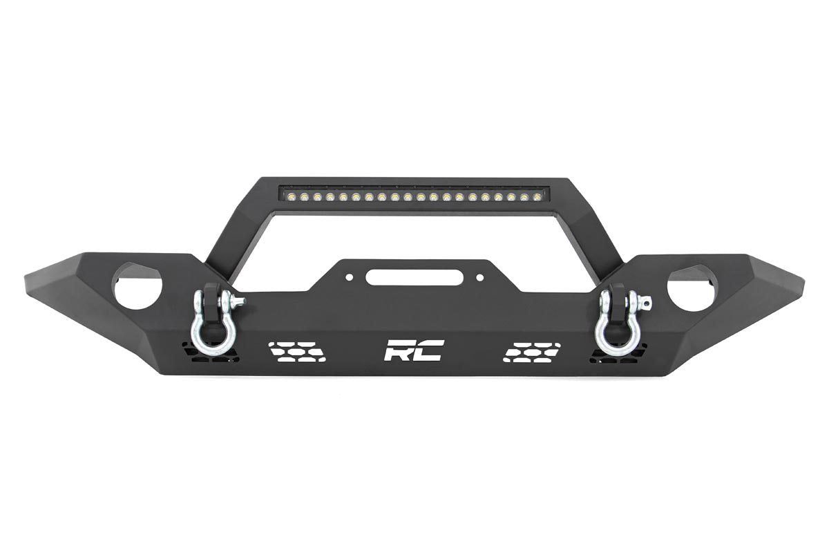 Upgrade Your Jeep's Front End: Give your Jeep aggressive styling and unmatched protection with Rough Country's Full Width LED Winch Bumper. Engineered from heavy-duty 5/32-inch steel and reinforced with 2x.120-inch tubing, this bumper is built to handle the toughest trails while enhancing your rig's rugged appearance.