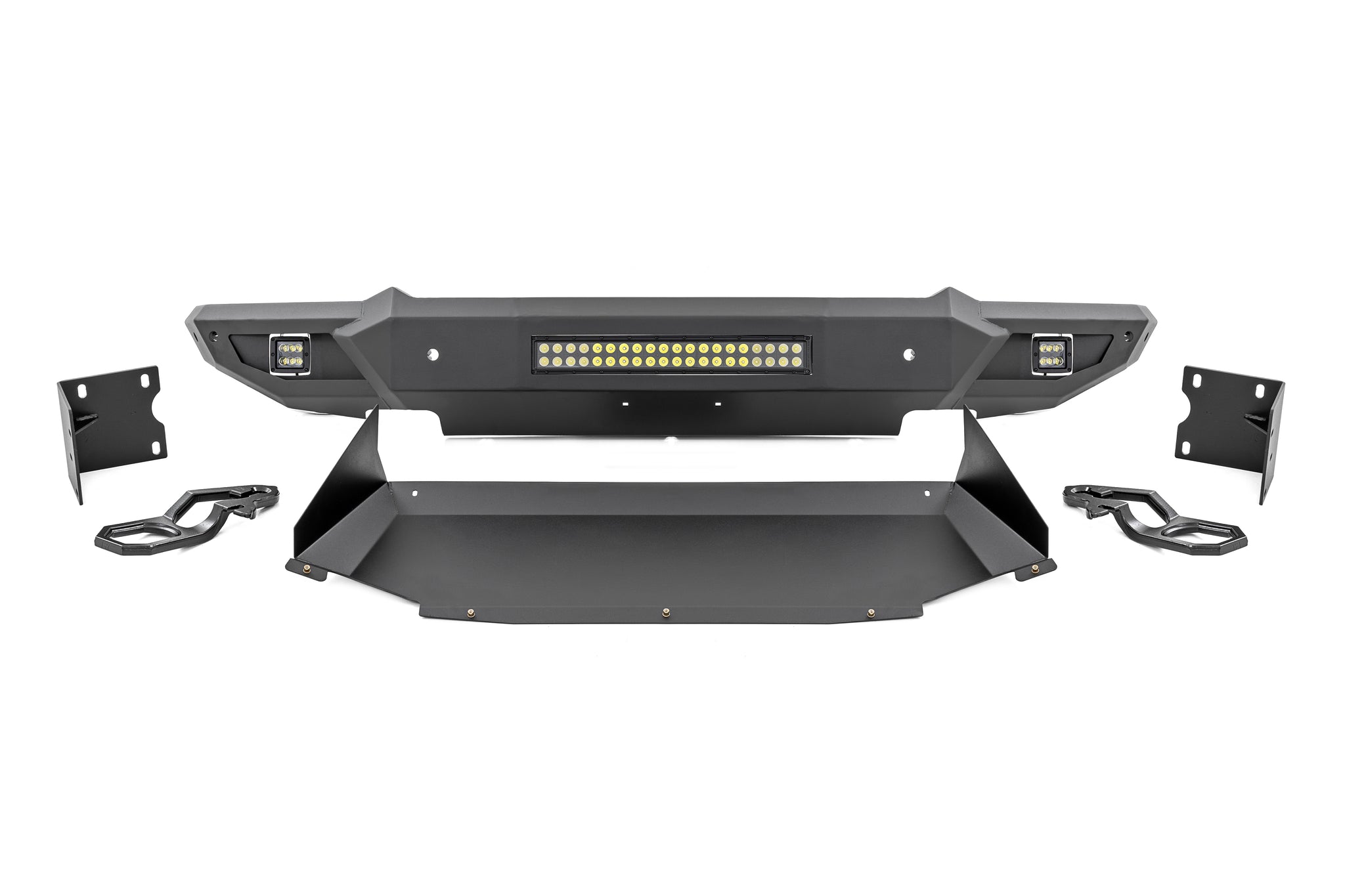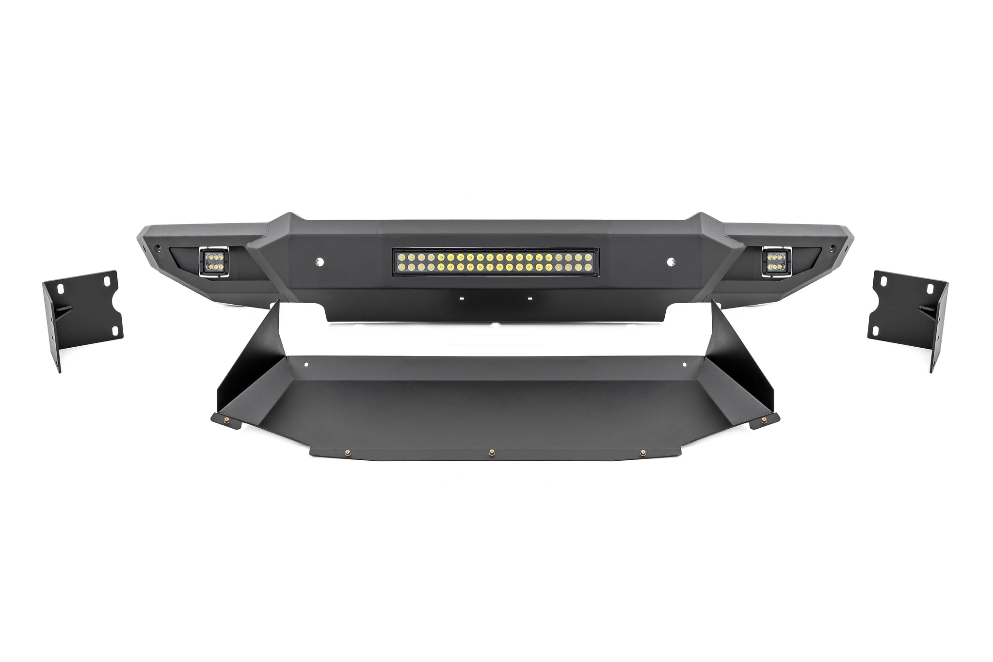 Durable Construction. Rough Country’s Front LED Bumper is made of durable, all-steel construction that’s ready to handle whatever you dish out. Each bumper features two Rough Country Black-Series 2in LED Cubes and a 20in LED Light Bar that offers over 15,000 lumens of combined lighting power. This incredible front bumper system is powder coated flat black and is ready to withstand the elements for a long lifespan of good looks.