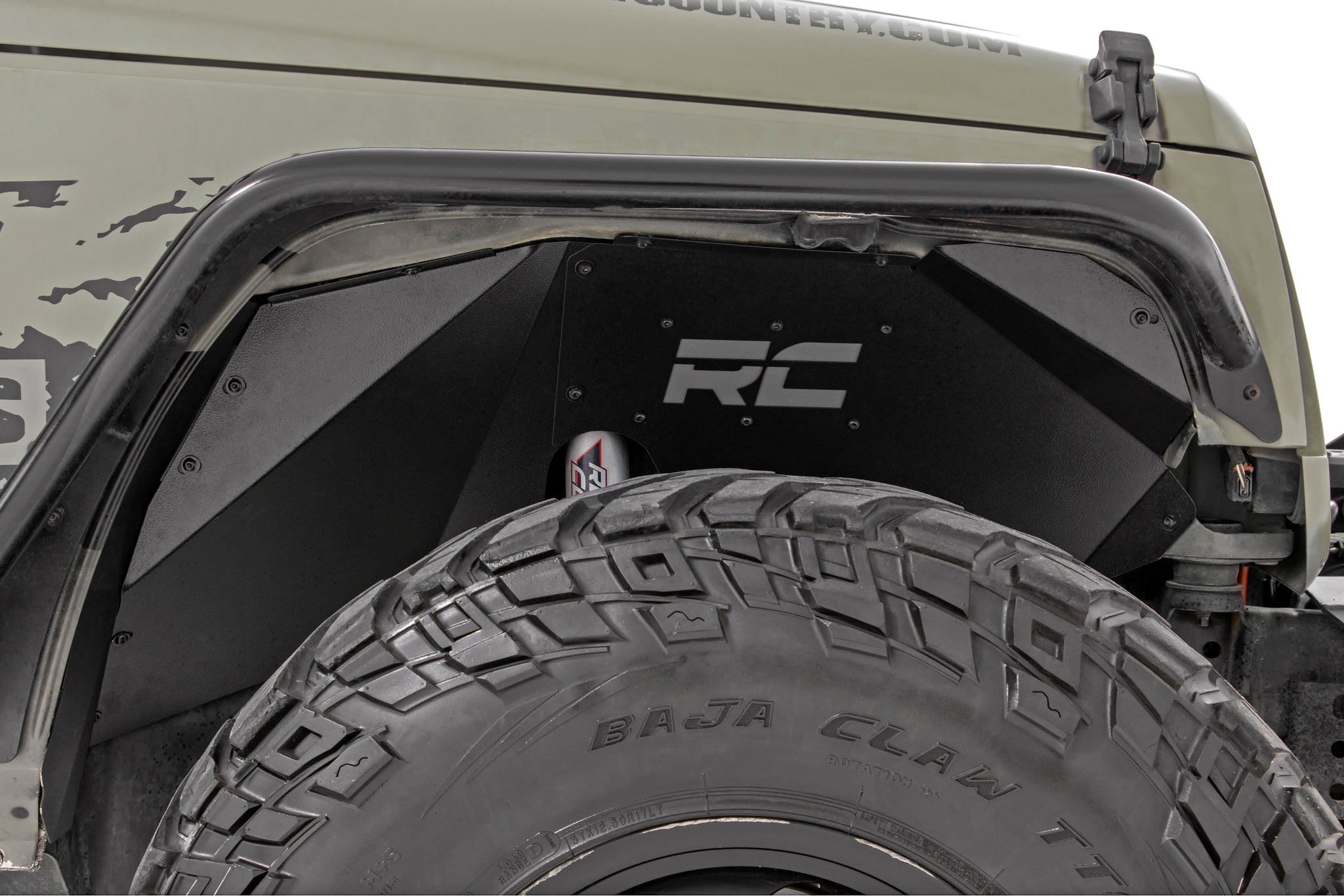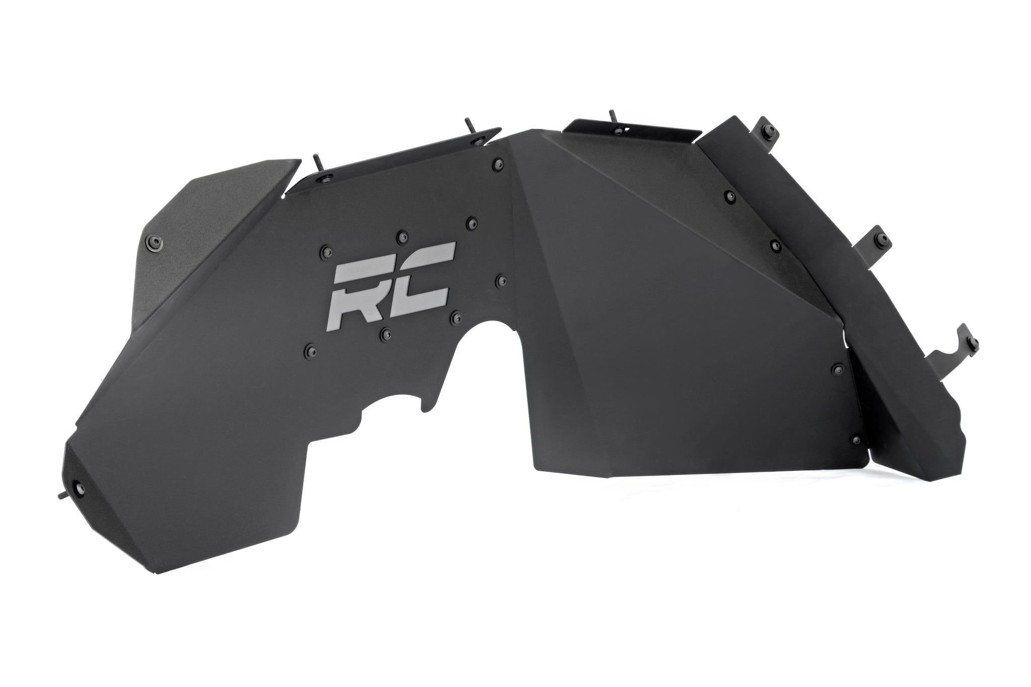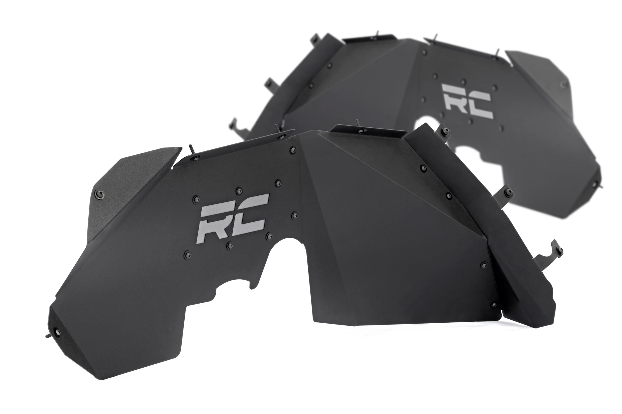 The solid-steel, angular design with “RC” and “Rough Country” logo cutouts gives an aggressive look to this now more visible area on your JK. An included, removable logo plate for the front liner can be custom painted to any color you wish for a pop of extra color, while the rear liner lines up perfectly to show the painted body color behind it. Rough Country Inner Fender Liners feature a bolt-on installation process with minor drilling for an easy upgrade you can do with common tools in a home garage. Includes Rough Country’s Lifetime Replacement Warranty.