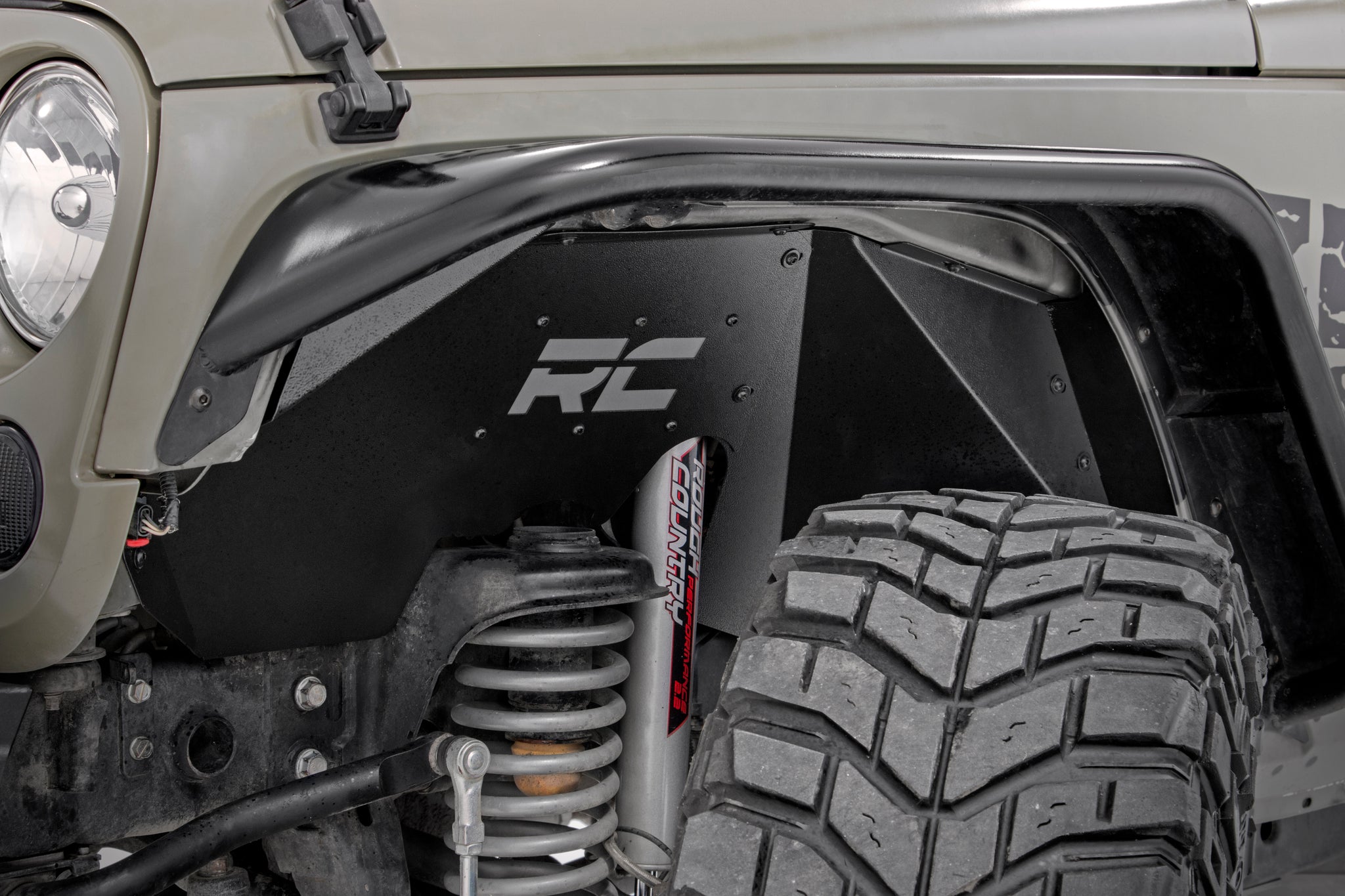 Clean up the look of your inner fenders when using aftermarket flares with Rough Country’s JK Front and Rear Inner Fender Liners. These eye-catching inner fender upgrades help protect sensitive areas from dust, mud, and debris, and can be easily installed in no-time flat!