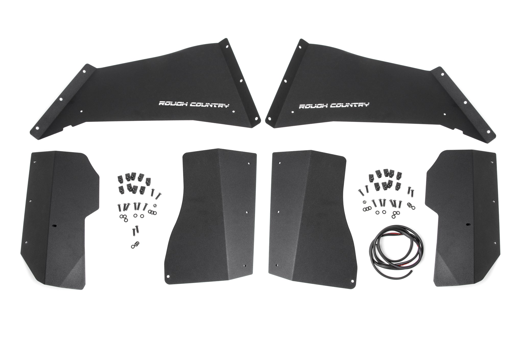 Aftermarket fenders are a huge improvement for most Jeeps wanting to get the best clearance and articulation possible, but when removing the stock fenders many people also remove the stock fender liners. Regain protection in this crucial area and protect your engine bay from the elements with Rough Country’s innovative Front and Rear Inner Fender Liners. With a unique 3-piece construction, these liners cover more areas than other liners on the market, giving more protection to your engine bay and body panels. Each Rough Country liner features a corrosion-resistant powder coat for long-lasting durability. Additionally, these liners mount firmly to the body for quiet operation, free of rattling or vibration noise.