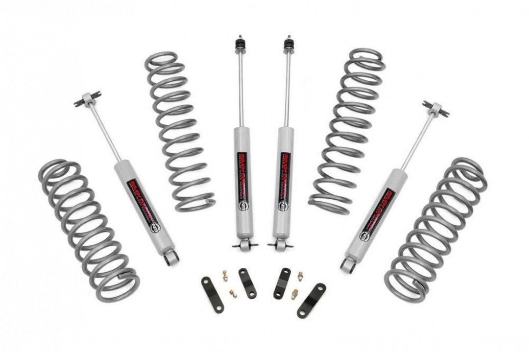Upgrade your Jeep today and conquer the trail with Rough Country's 2.5-Inch Suspension Lift Kit, where performance meets unmistakable style.