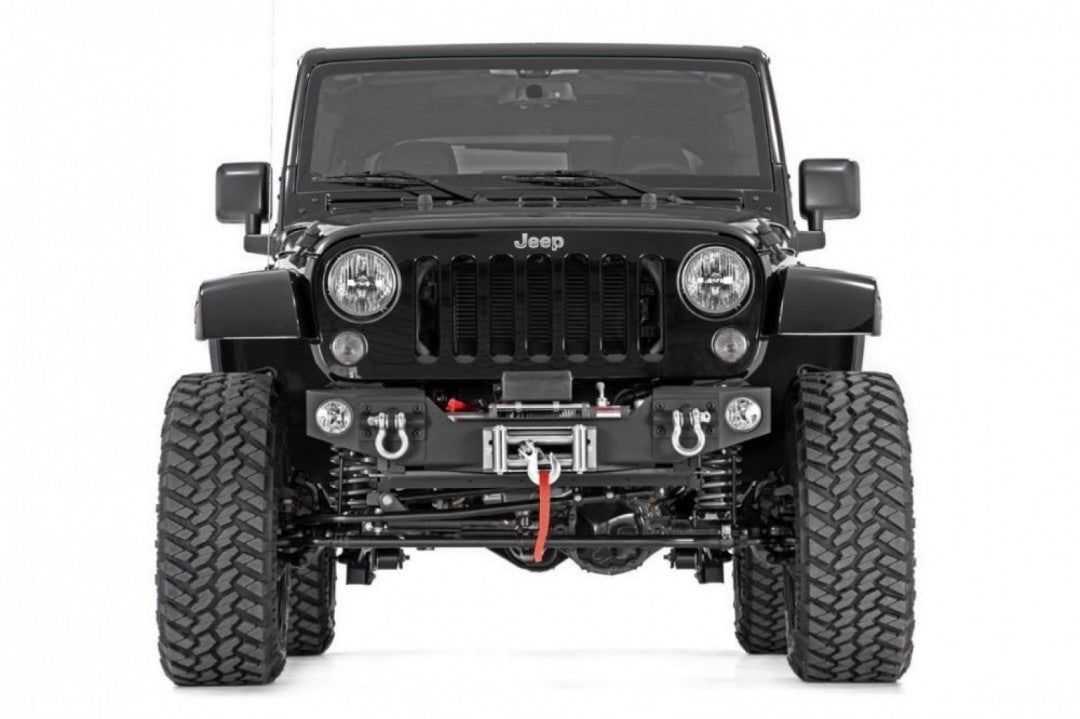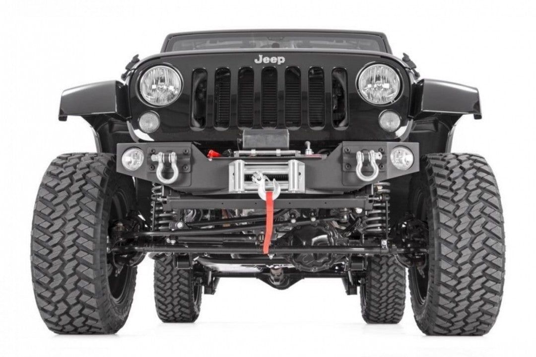 The JK Hybrid Stubby features a thick plate steel center with an integrated winch mount. Two steel end caps with integrated fog light mounts help further protect the winch, partially encasing it - but the real success of this design lies in the fact that these end caps are removable, offering plenty of clearance to easily install or remove the winch. Mount your fairlead to the outside and the result is an easy-to-install winch protection system. Best of all, The JK Hybrid Stubby weighs in at a mere 20kgs!